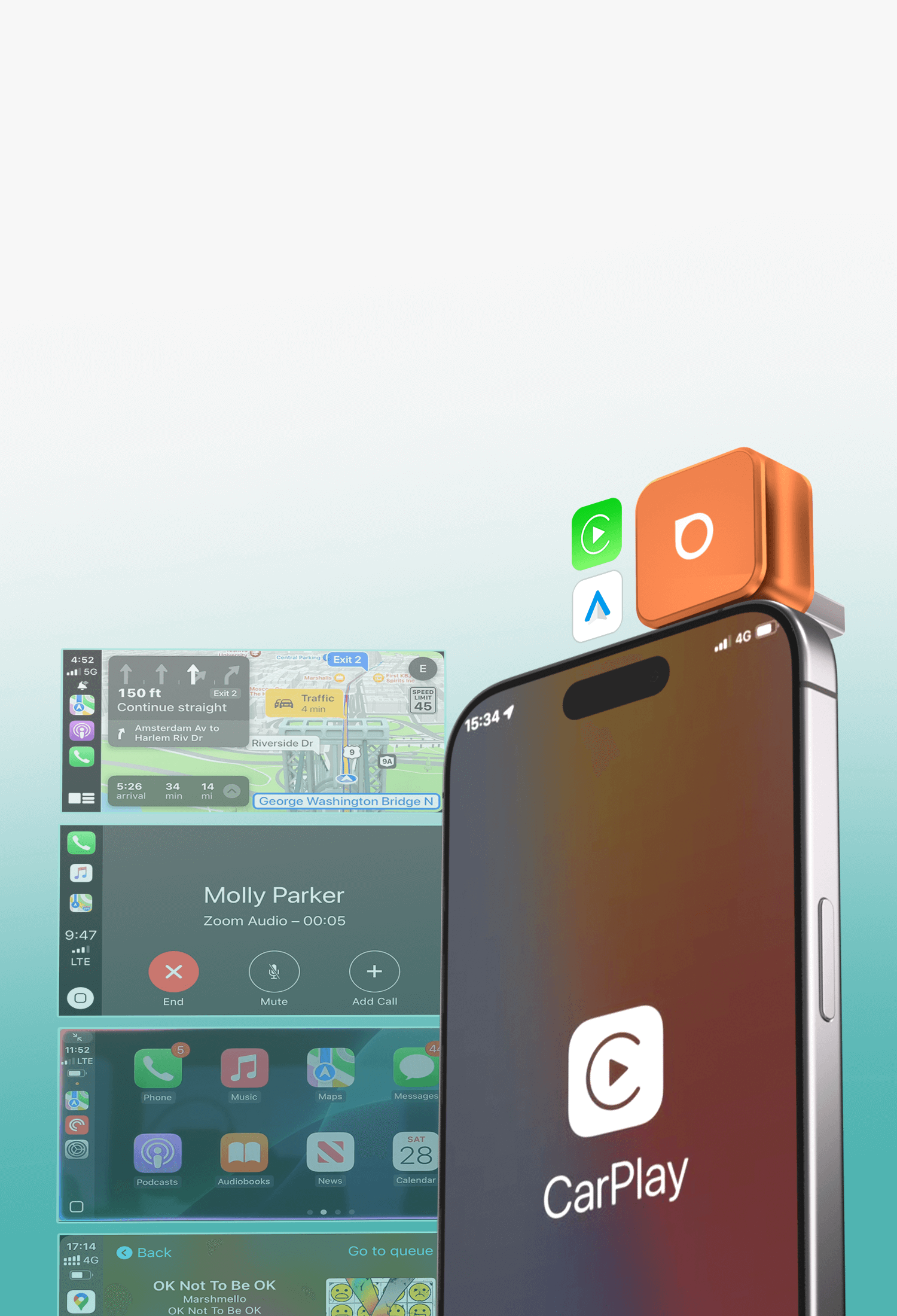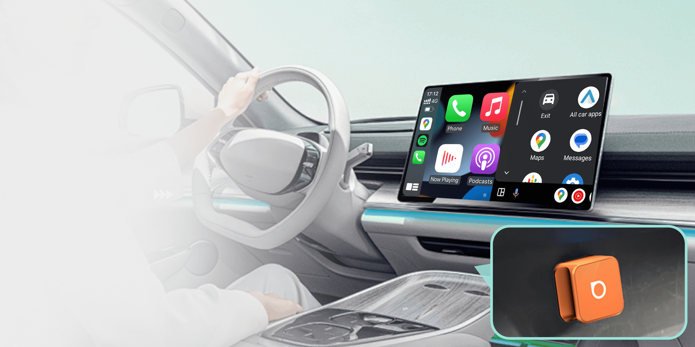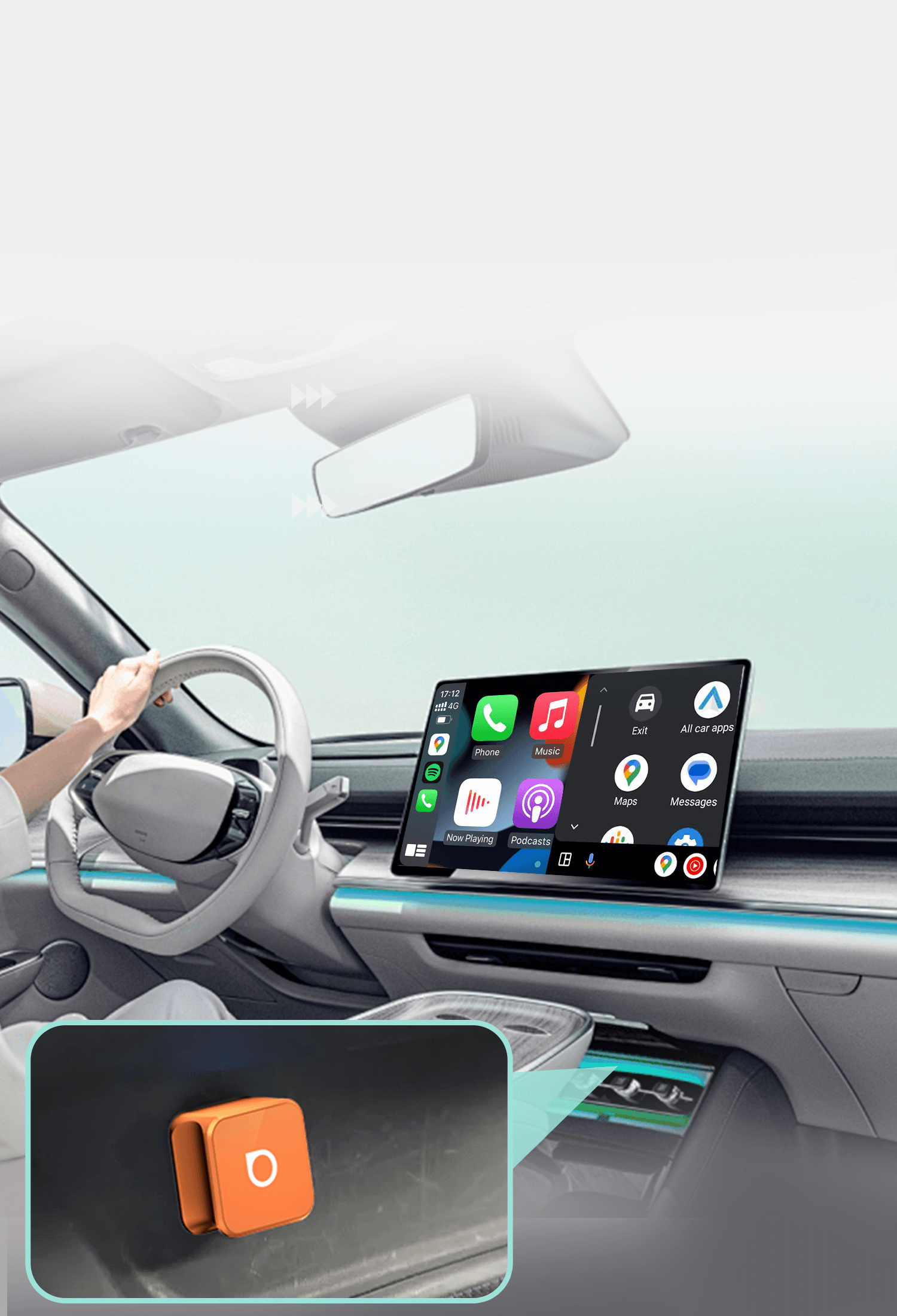 Puoi lasciare Ottocast Mini™ collegato alla tua auto e, ogni volta che torni in macchina, si connetterà automaticamente e aprirà Apple CarPlay o Android Auto wireless.