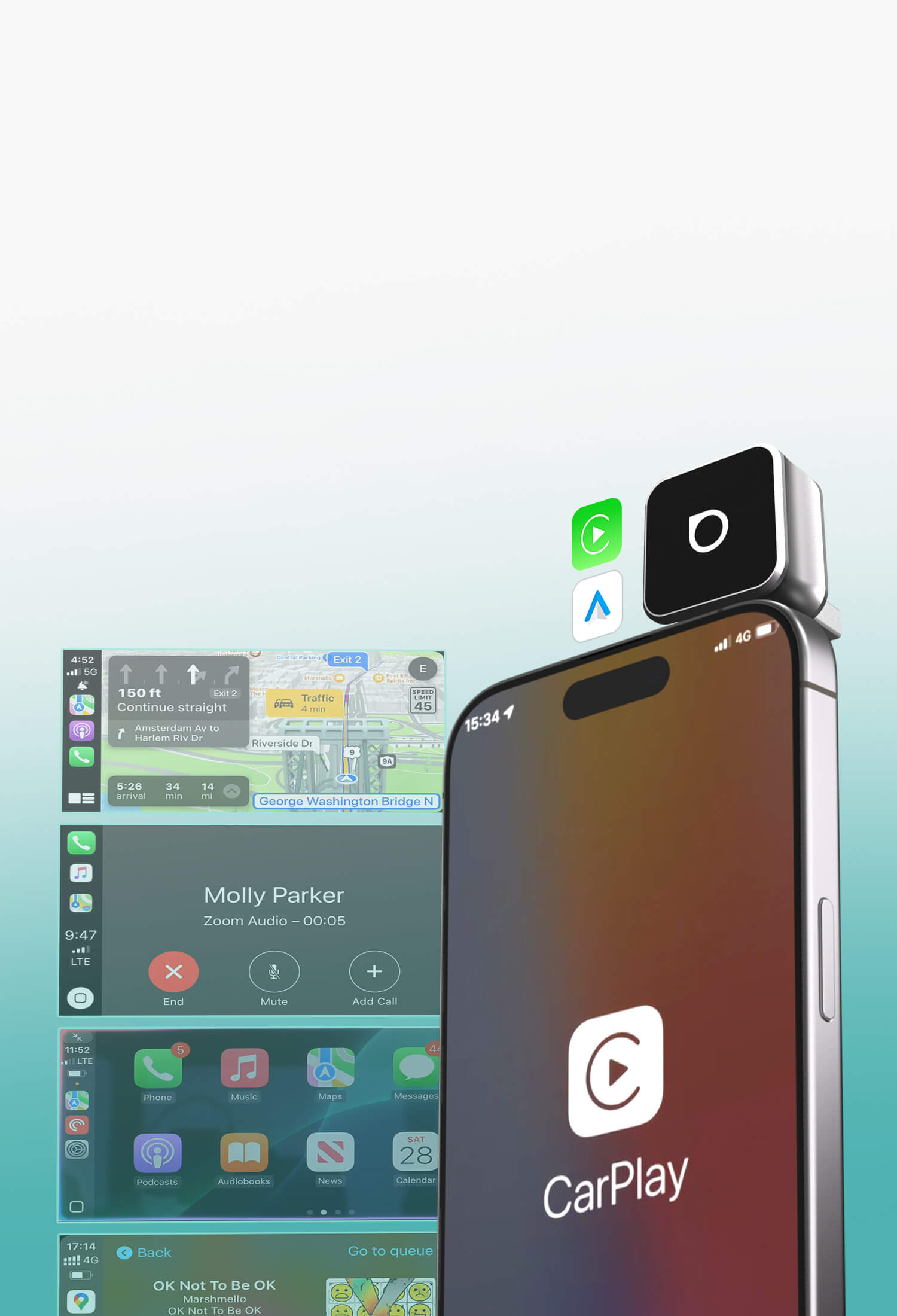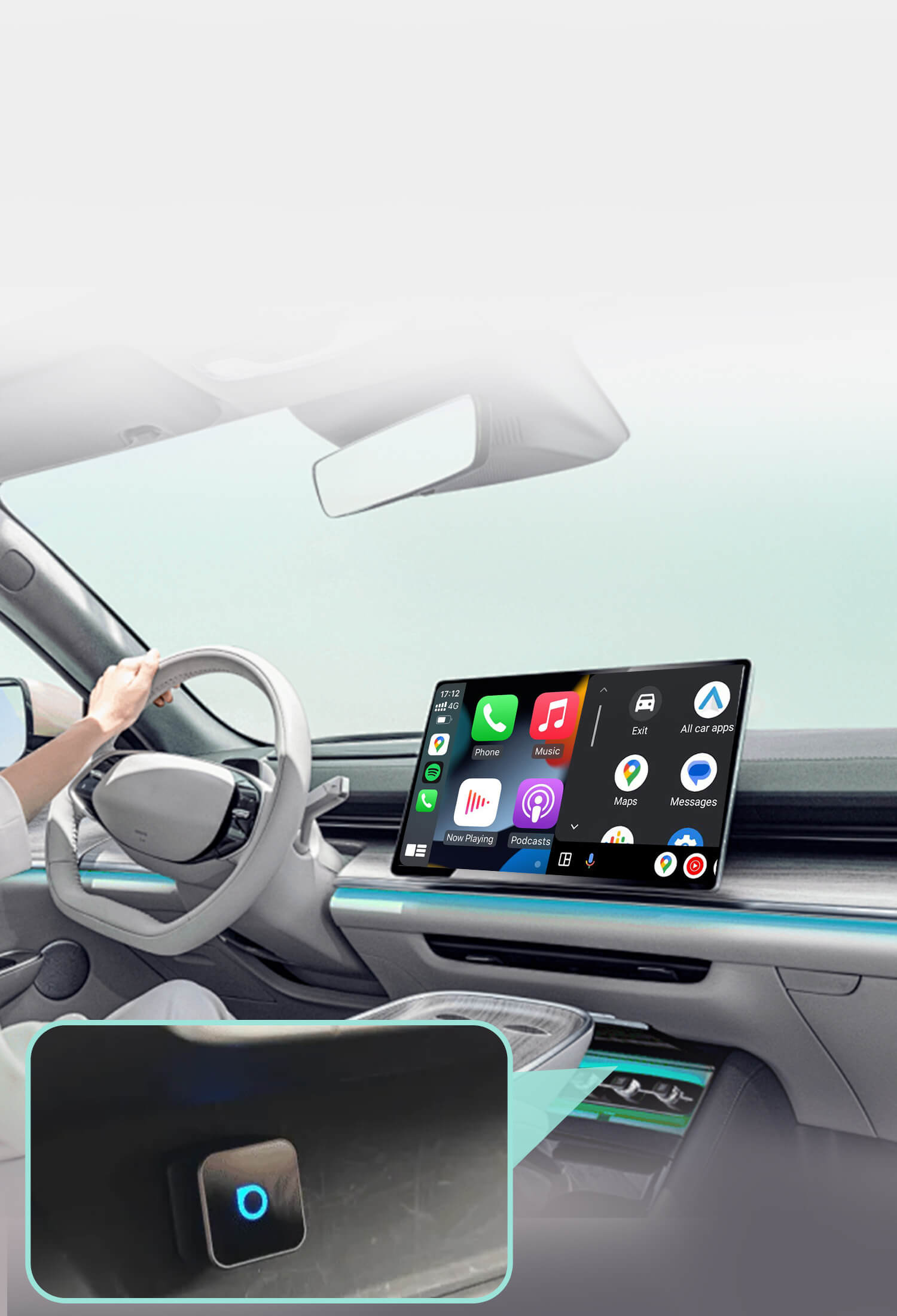 Puoi lasciare Ottocast Mini™ collegato alla tua auto e, ogni volta che torni in macchina, si connetterà automaticamente e aprirà Apple CarPlay o Android Auto wireless.