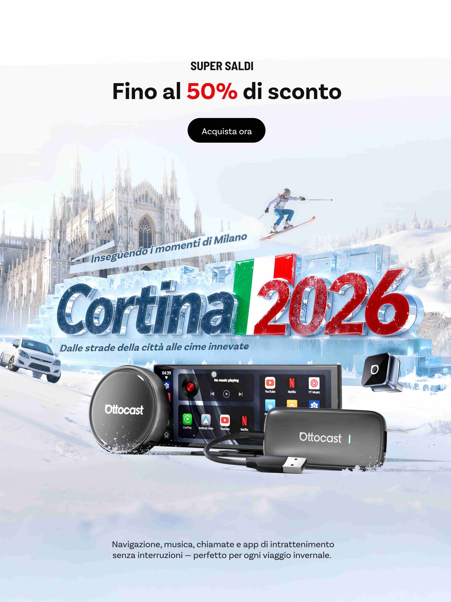 <p>Dal 2009, Ottocast ha ridefinito la connettività in auto. Dall'innovazione con adattatori wireless CarPlay/Android Auto fino a sistemi Android integrati, permettiamo ai conducenti di tutto il mondo di rimanere sempre connessi, intrattenuti e al sicuro durante i loro viaggi.</p>