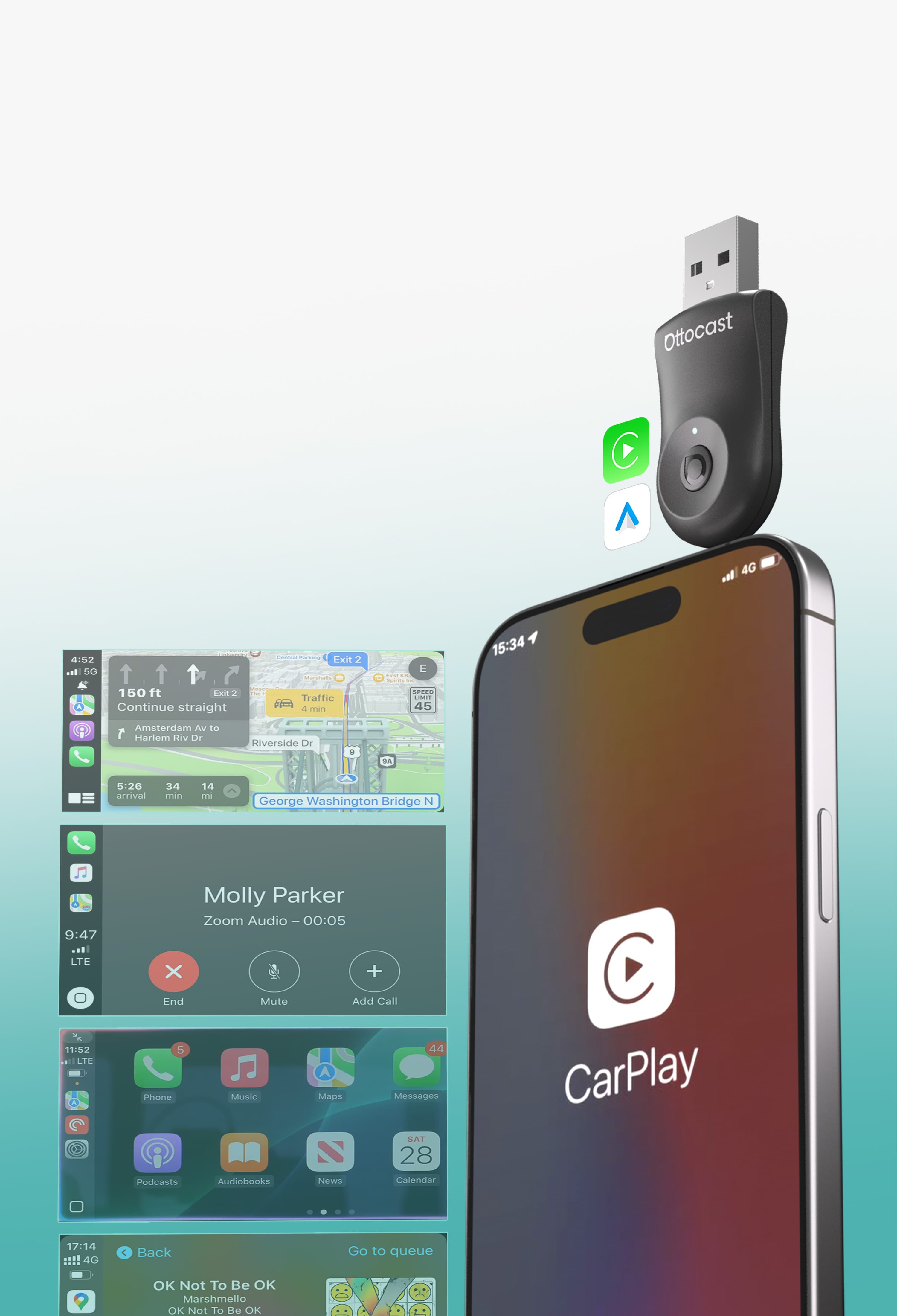 L’adattatore OTTOCAST MINI converte facilmente il tuo sistema CarPlay o Android Auto cablato in una versione wireless. Che tu preferisca iOS o Android, vivrai un’esperienza di guida fluida. Tutte le funzioni CarPlay e Android Auto restano attive: navigazione, musica, Siri, chiamate, radio, ecc.❌ Non compatibile con tutti i modelli BMW e Tesla. ❤️ Prima dell’acquisto, verifica che la tua auto supporti CarPlay o Android Auto via cavo.
