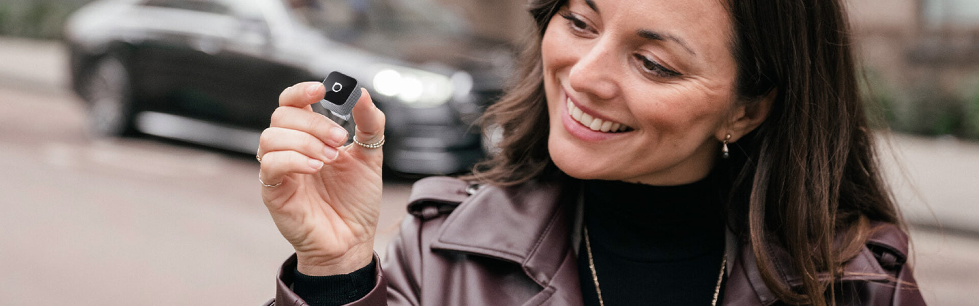 Il design compatto con connettore USB a 90° fa risparmiare spazio e rimane saldamente collegato anche su strade sconnesse.