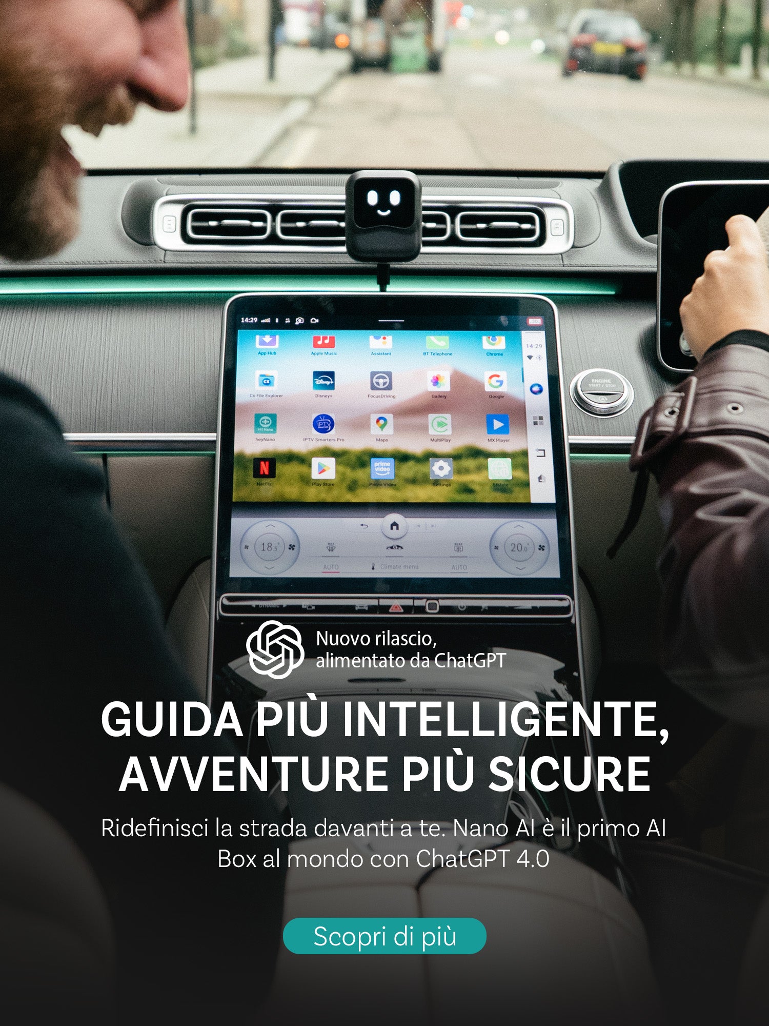 La tua auto, le tue regole. Che si tratti di trasmettere in streaming il tuo programma preferito o di ottimizzare la configurazione, Nano AI ti mette al controllo.